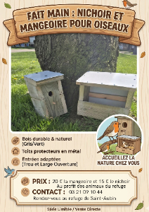 Disponible à l'accueil du refuge, des nichoirs et mangeoires pour oiseaux.