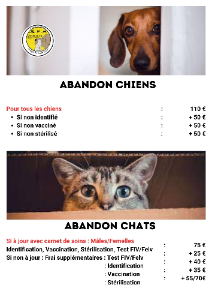 Par simple information voici les frais d'abandon pour les chiens et les chats.